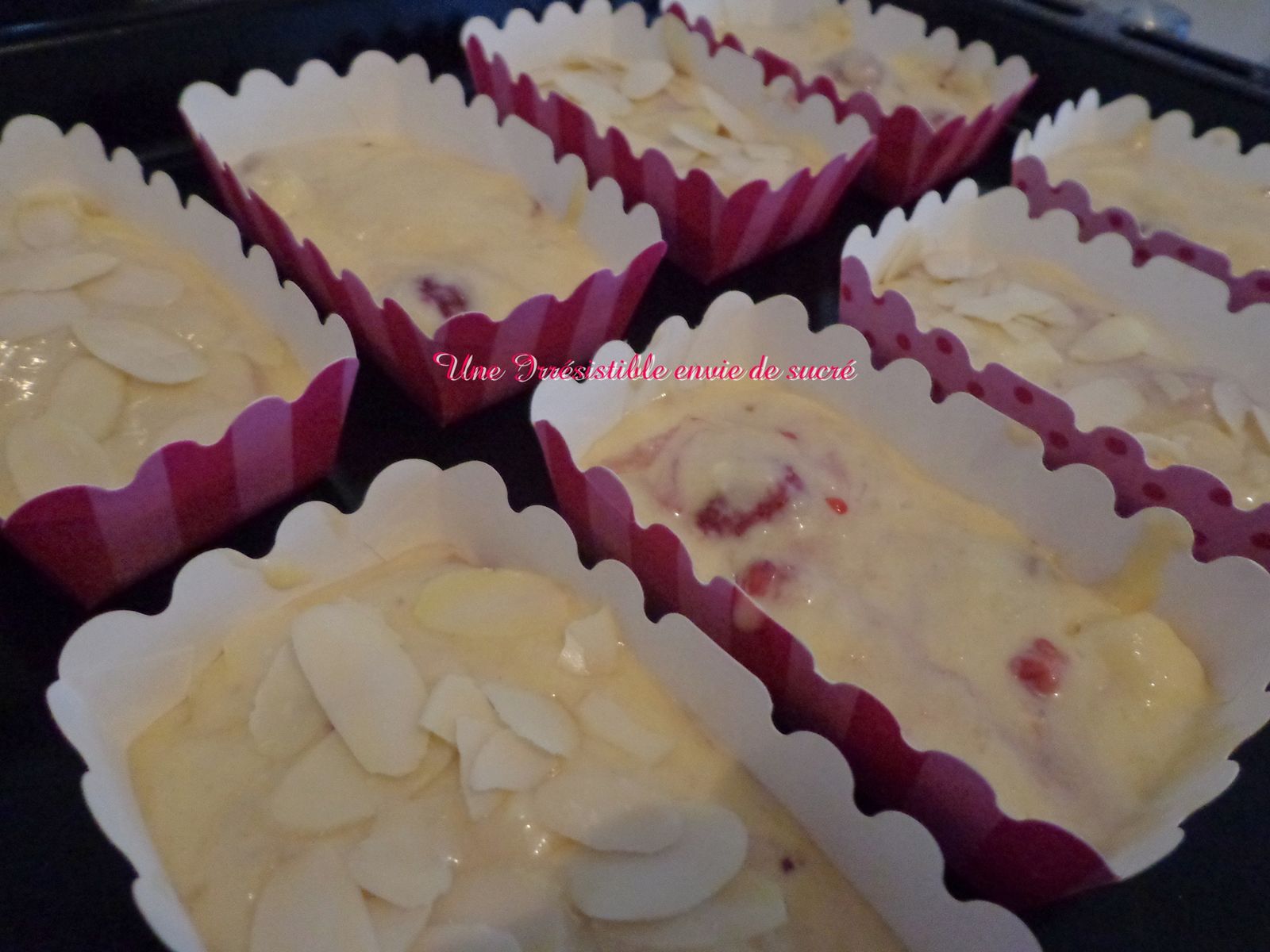 - Dans un moule a muffins déposer des caissettes en papier et a l'aide d'une cuillère déposer un peu de pâte , remplir au 3/4 ( même un petit peu moins) pas plus car les cupcakes vont bien gonfler , et ils ne faut pas qu'ils montent trop pour que vous puissiez mettre aisément le topping.