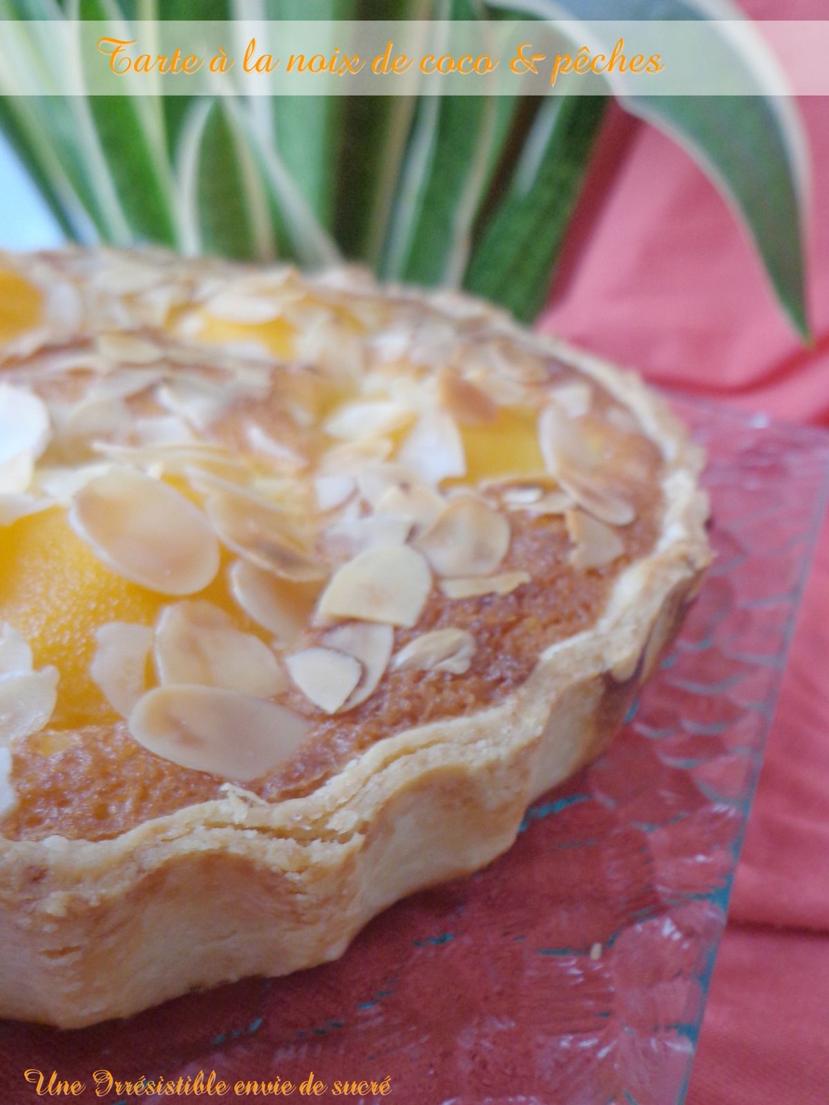 Une tarte au saveurs exotiques pour changer un peu de la traditionnelle tarte amandine aux pêches. Un fond de pâte sablée, un appareil moelleux à la noix de coco et le croquant des pêches et amandes effilées…