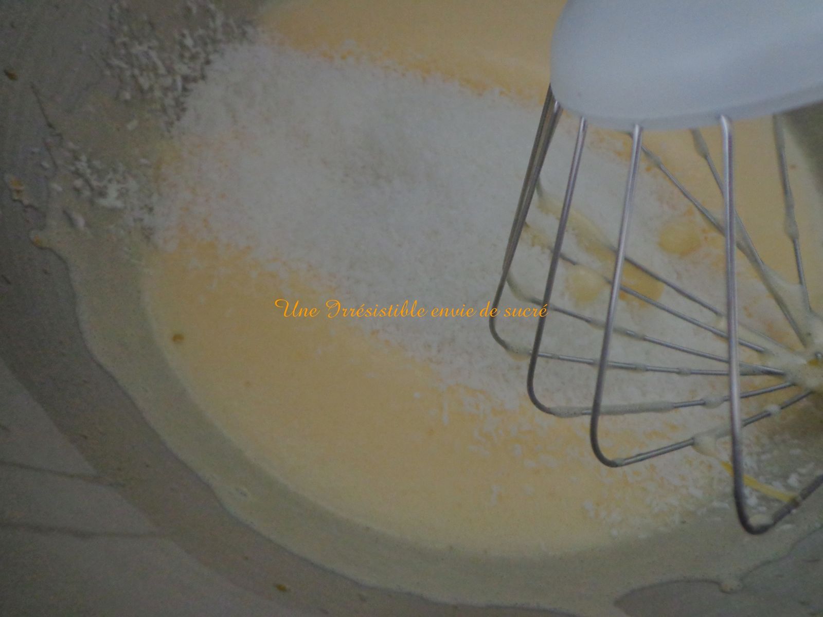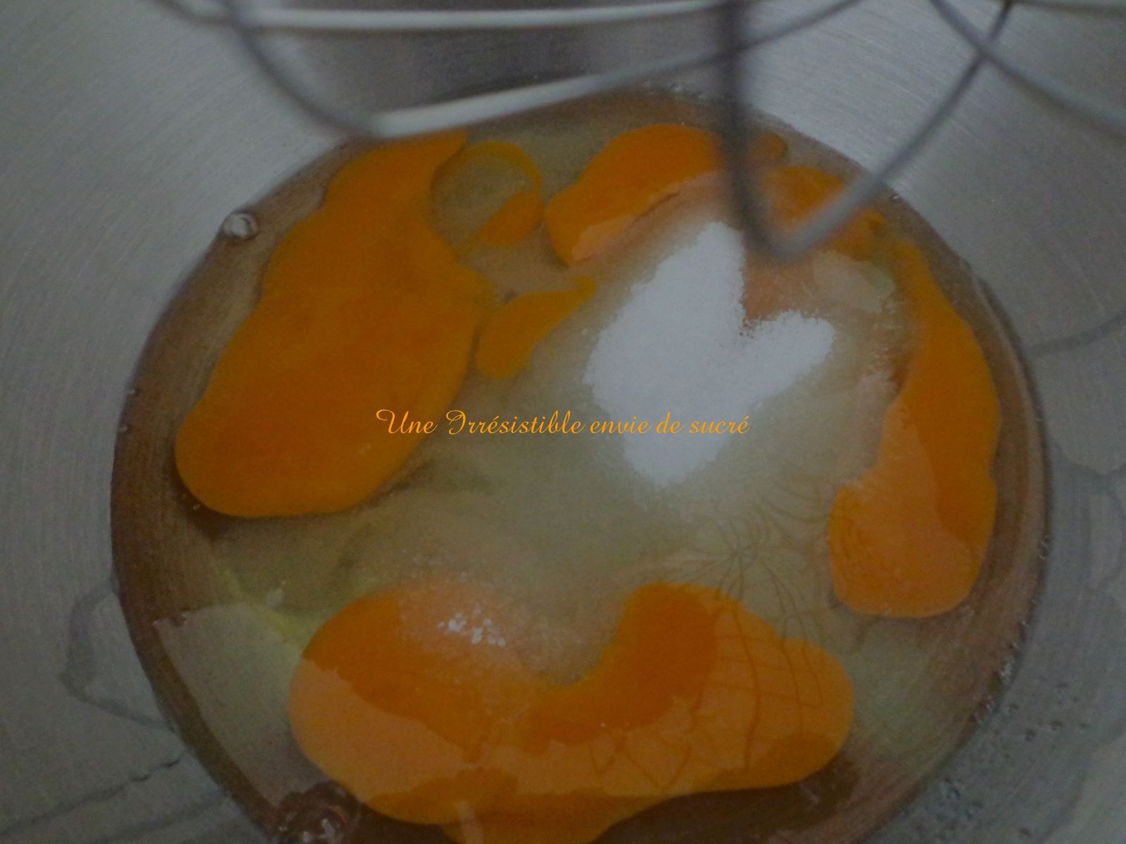 - Monter les blancs en neige avec une cuillère a soupe de de sucre jusqu’à ce qu’ils soient bien fermes , réserver.