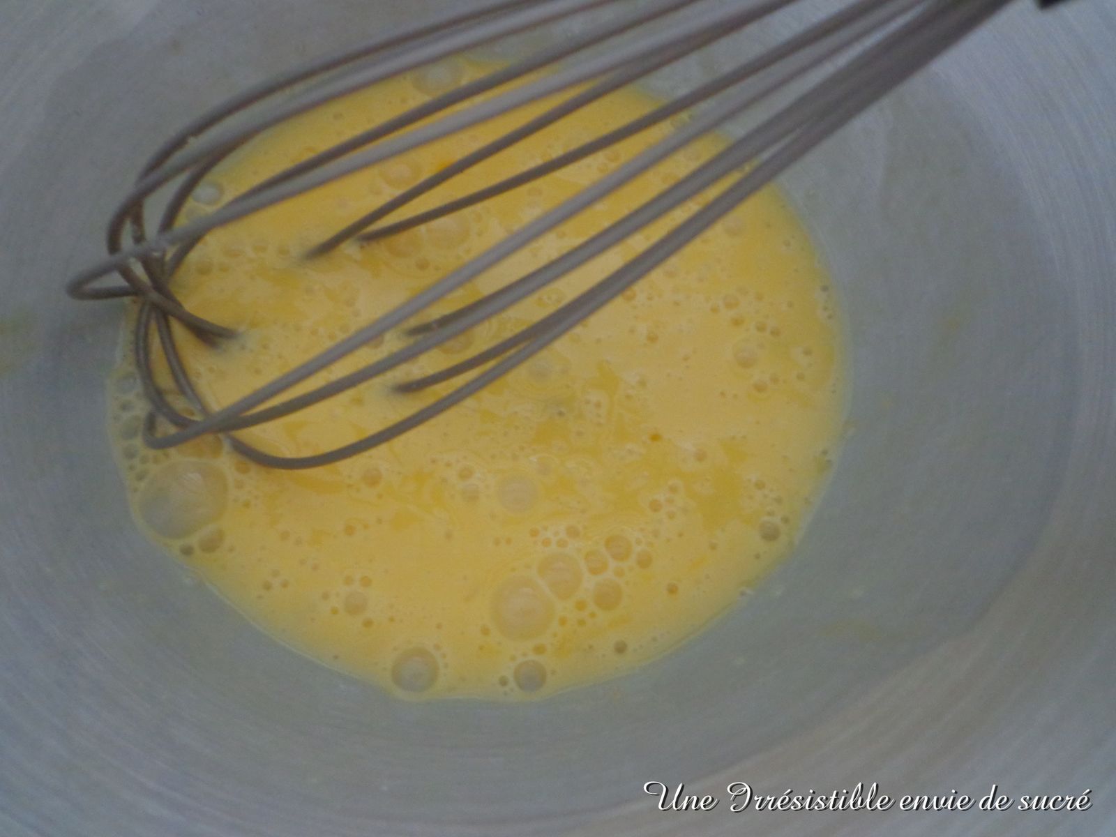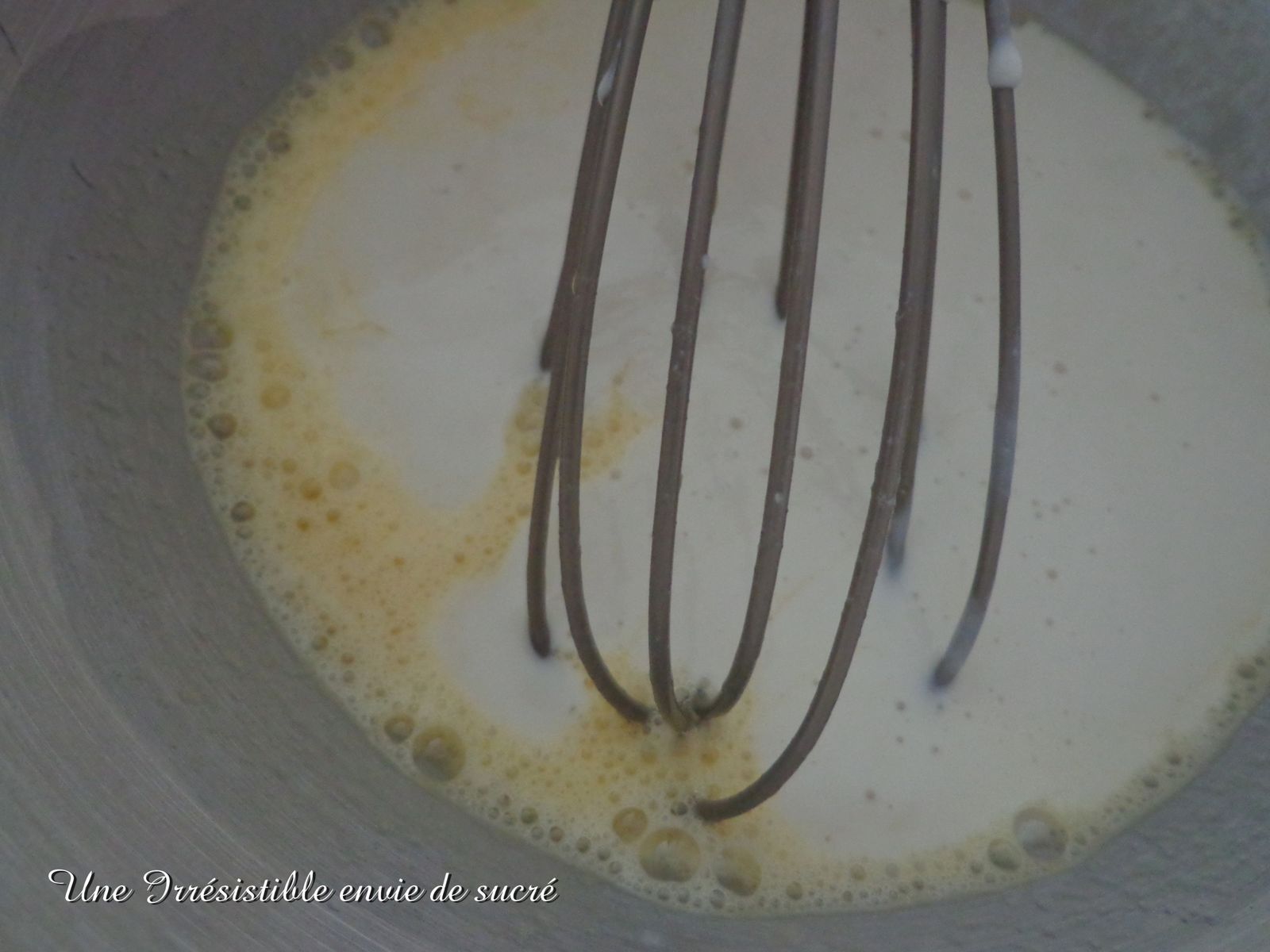 Mélanger tout les ingrédients à l'aide d'un fouet et laisser reposer 10 min.