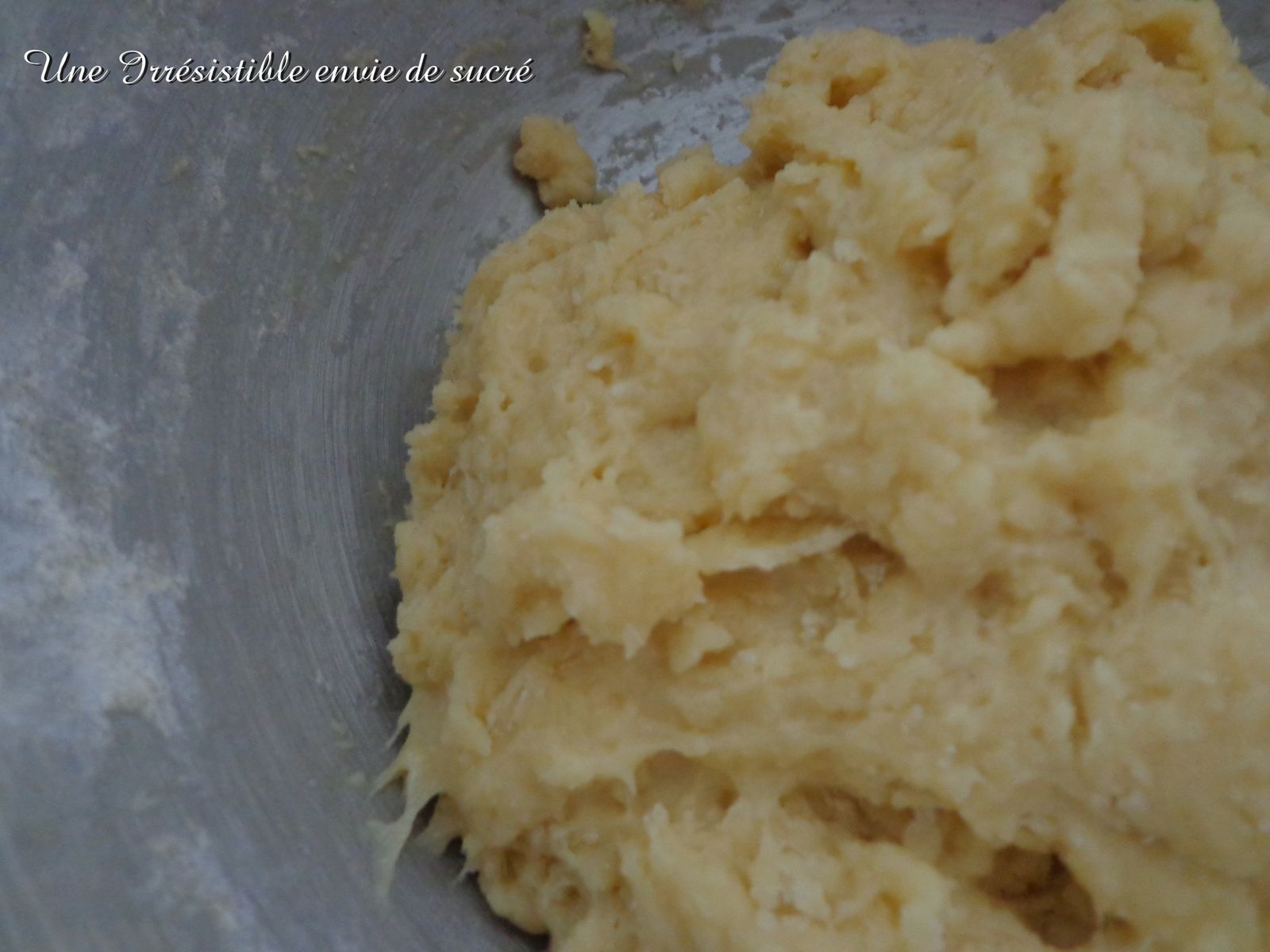 - Ajouter les 3 oeufs et pétrir cette pâte pendant 2 a 3 minutes a vitesse lente afin d'obtenir une pâte très dense.